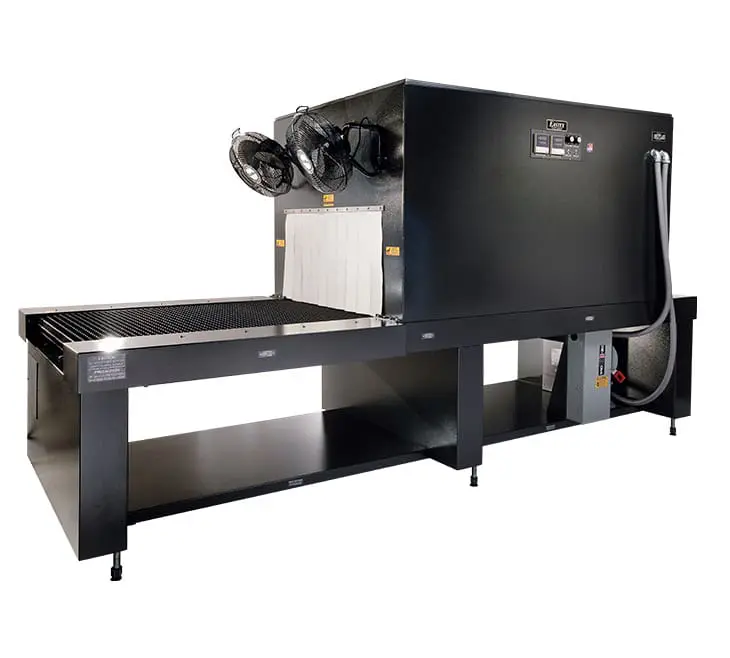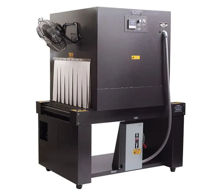 After the package has been bundled, it moves down the conveyor to a bundling tunnel. Bundling tunnels are designed to shrink the thick polyethylene film used in bundling applications. The bundling tunnel shrinks the film tightly around the product creating a sealed and secure finish. To ensure an evenly shrunk bundle, Easteyโs bundling tunnels utilize four directional airflows to provide a positive and uniform finish to the package.