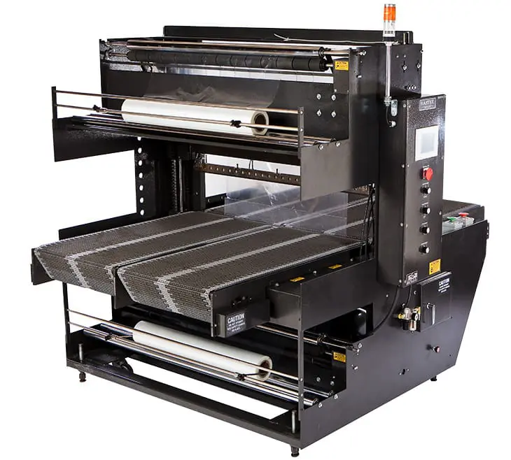 Once the product passes the seal head, heated seal bars come together to fuse the upper and lower sections of film, creating an open-ended sleeve around the product. To seal the thick film used in bundling applications, bundlers are equipped with a hot knife seal system to create a clean, positive, and even seal.